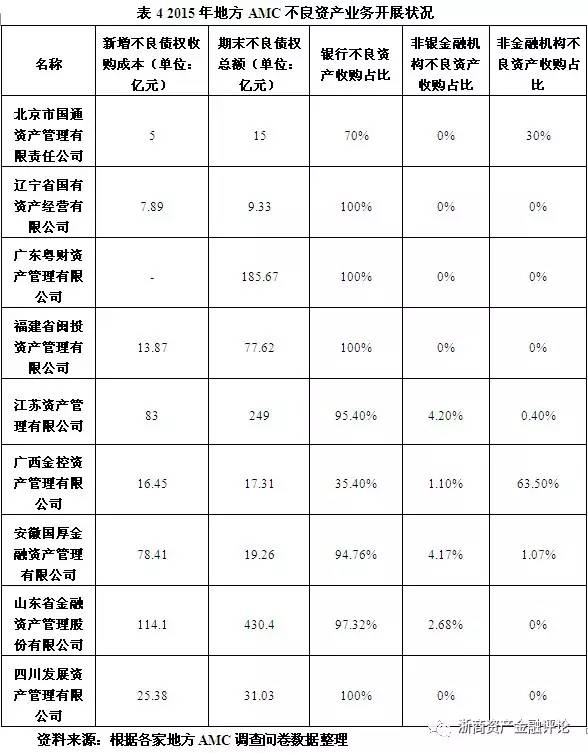 地方AMC除了處置不良資產的目標外,還擔負著維護和促進地方金融穩定發展的任務。從體量上看,地方企業的融資需求巨大,尤其是具有較好發展前景的民營企業,在獲得銀行貸款較為困難的情況下,地方AMC的融資租賃業務為地方民營企業的發展起到了一定的助推作用。同時,法律等相關咨詢業務的開展,使得地方AMC能夠擔當中間人的角色,在銀行與地方企業就貸款問題協商時,提供專業的意見,通過制定合理的貸款利率、延期還款和抵押還款等制度,減少不良資產的產生,從內部將不良貸款轉化為良性貸款,減少銀行的損失的同時,還為企業解決債務問題贏得了時間,實現雙贏。