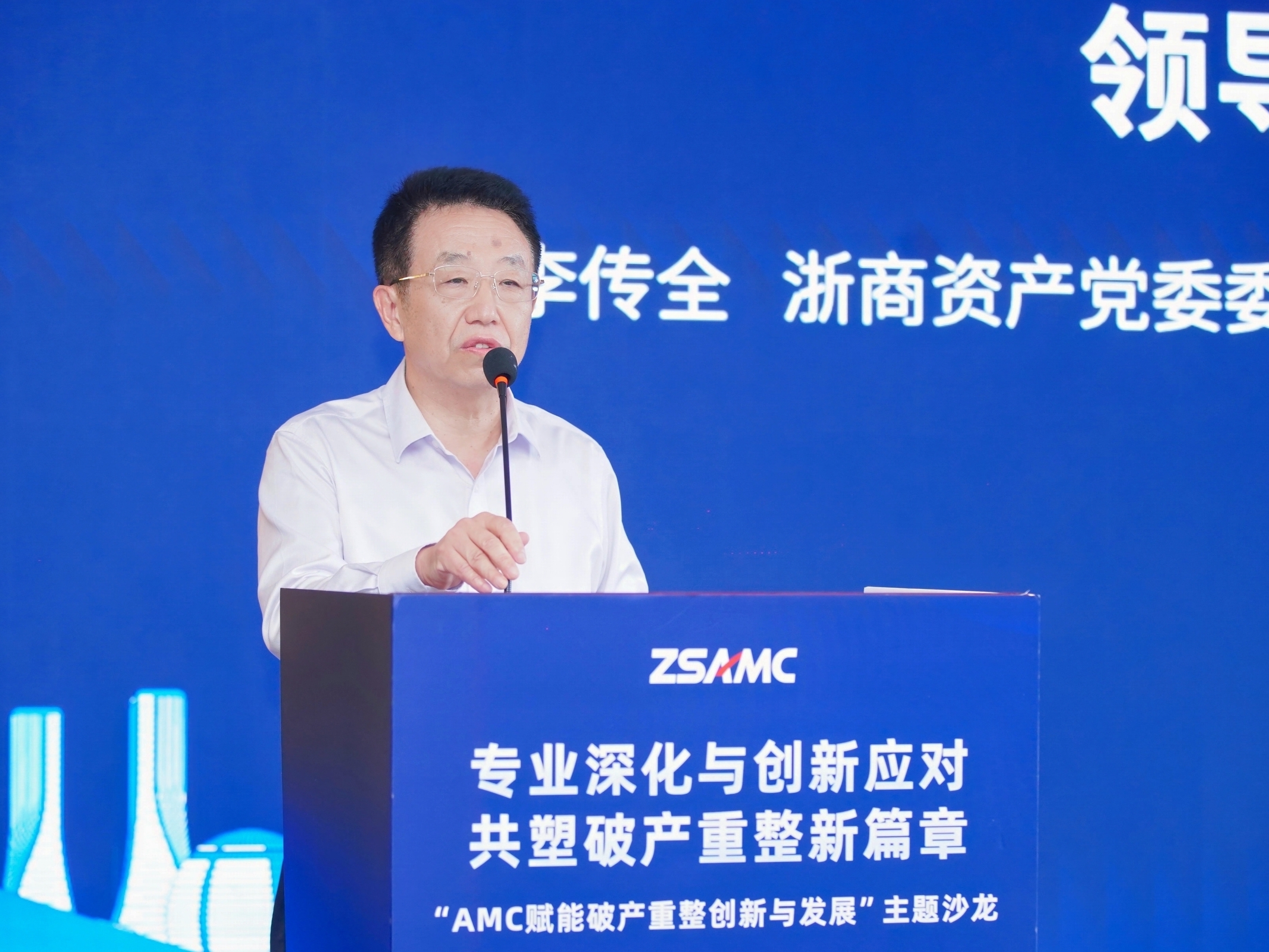 主旨演講環節,浙商資產法律合規部總經理陳超就AMC在企業破產重整中的作用進行了深入解讀,強調了府院聯動機制的重要性。浙商資產業務副總、破產業務部總經理、浙商企融董事長王昕介紹了公司在破產業務領域的專業實力和創新模式。